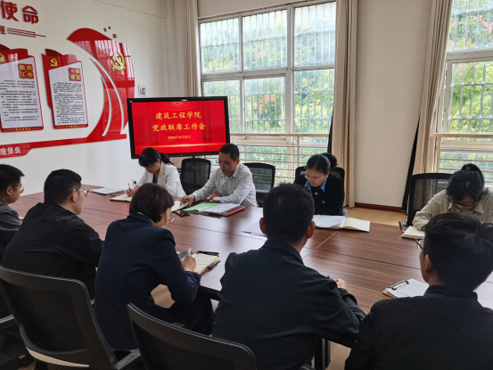 9月25日,建筑工程学院召开了党政联席会,重点讨论如何加强专业建设和内涵发展,以更好地服务学校中心工作。此次会议旨在提高学院的专业水平和服务能力,为学校的整体发展做出更大的贡献。