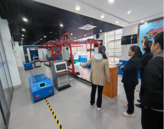 随后带领大家参观了教学实训设备等基本设施,如自动化码头操作模拟软件、岸桥和门机模拟操作室、港航安全警示教育基地、港口运营管理综合实训中心等,并详细讲解了各实训设备在教学中的具体应用情况。