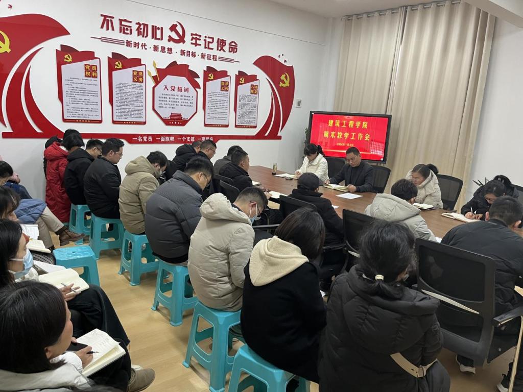 2024年1月3日,建筑工程学院在党员活动室召开了期末教学工作会议。全体教师参加了此次会议,旨在总结本学期教学工作,部署下学期的任务安排及期末考试相关事宜。