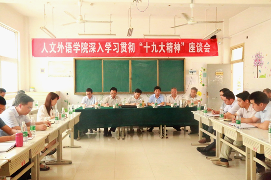 2018年6月20日下午,党委书记刘士欣参加人文外语学院深入学习贯彻十九大精神座谈会。