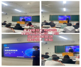 为全面做好国家资助政策的宣传工作,让所有学生更加全面和深入的了解国家资助政策,在全社会营造关心帮助家庭经济困难学生的浓厚氛围,我院全体师生师对国家的资助政策都有了更深刻的认识,把国家对大学生的资助政策真正用到了学院的贫困生,帮助他们顺利完成学业。 2022年9月20日至9月21日,建筑工程学院各班辅导员老师带领同学开展了资助政策宣传活动。