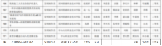 22建装学生王英浩刘旭,在宋聪王海龙两位老师指导下完成的《一种钢筋堆场标准化做法》,荣获第十八届全国高职院校“发明杯”大学生专利创新大赛等奖!